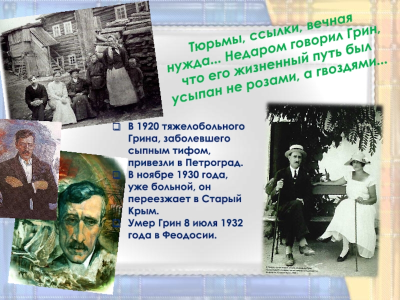 В 1920 тяжелобольного Грина, заболевшего сыпным тифом, привезли в Петроград.