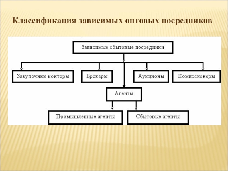 Зависимые (не претендуют на право собственности на товары, работают от имени и за счет продавца и не имеют возможности влиять на цены: агент, брокер, комиссионер и др.)