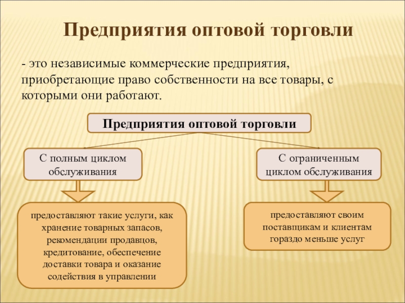 Оптовые торговые предприятия производителей – это предприятия, осуществляющие оптовую торговлю без привлечения независимых оптовиков.