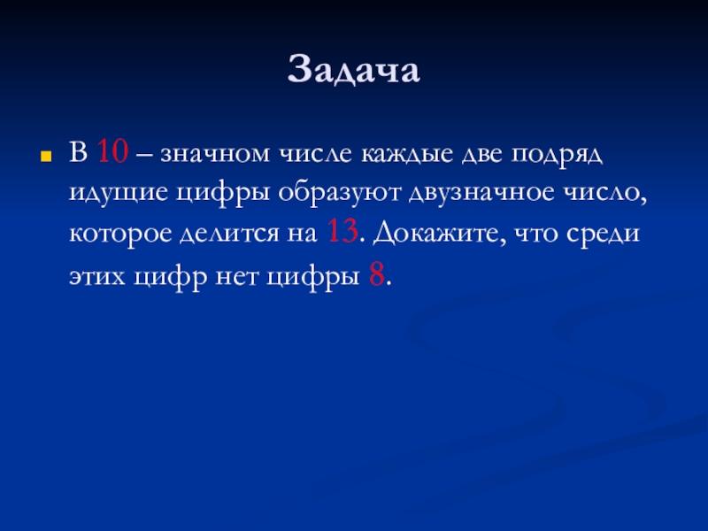 двузначное число, которое делится на 13. Докажите, что среди этих цифр нет цифры 8.