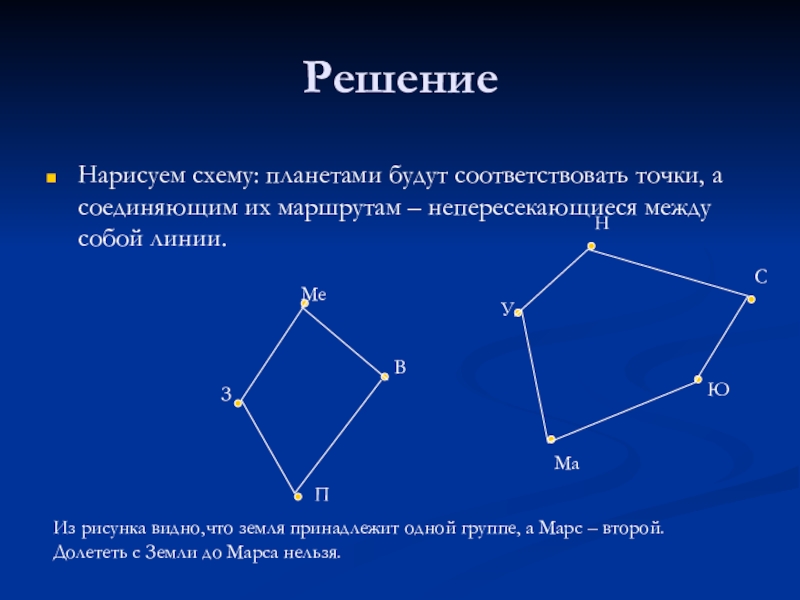Нарисуем схему: планетами будут соответствовать точки, а соединяющим их маршрутам –