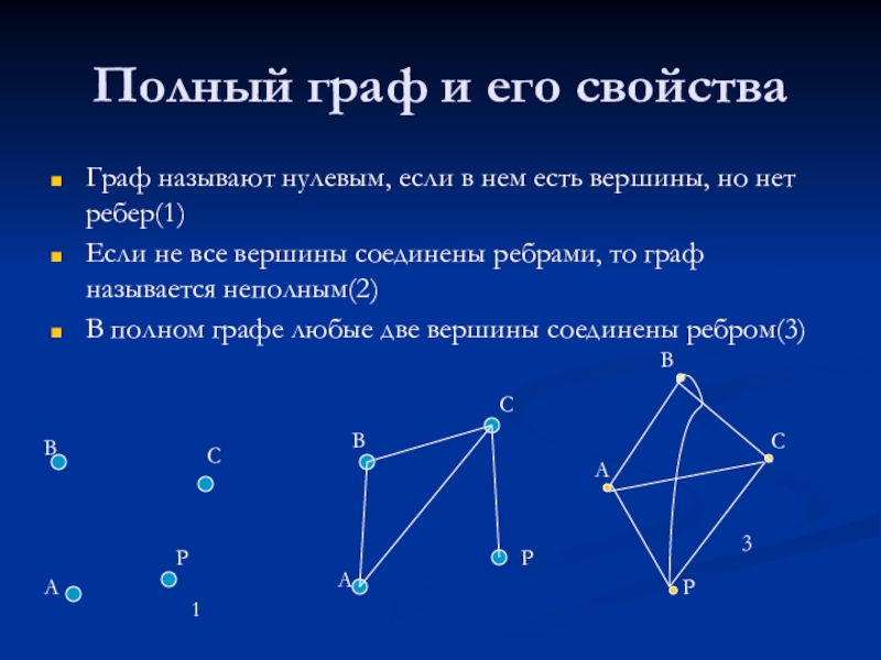 Если не все вершины соединены ребрами, то граф называется неполным(2)