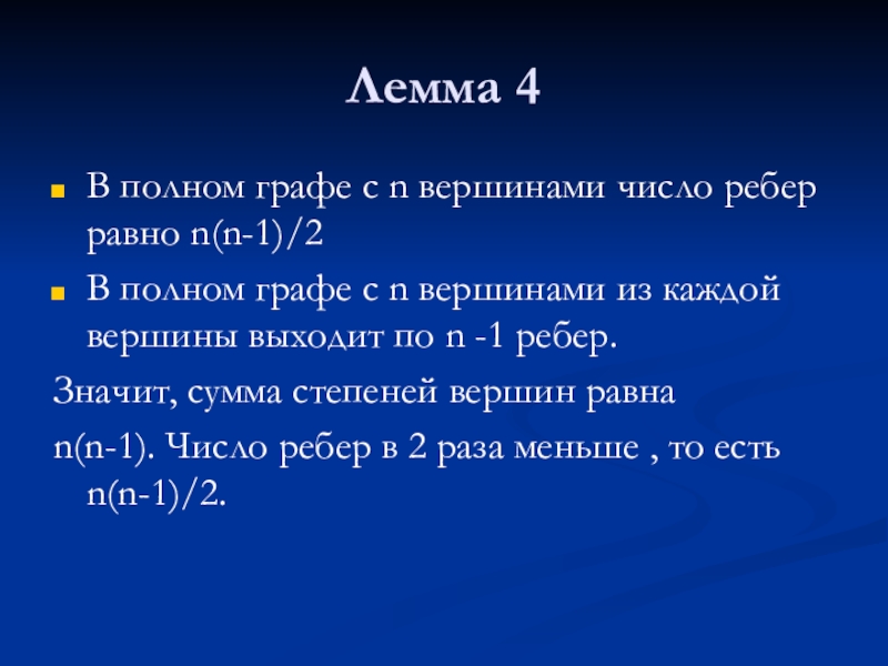 В полном графе с n вершинами число ребер равно n(n-1)/2