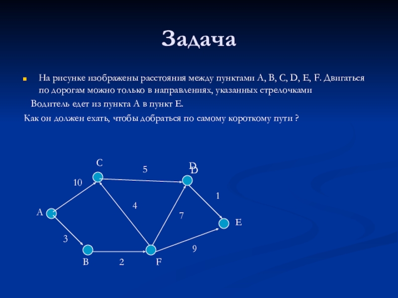 Как он должен ехать, чтобы добраться по самому короткому пути ?