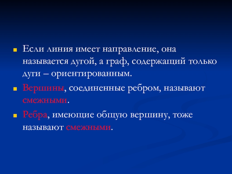 Слайд 17Если линия имеет направление, она называется дугой, а граф, содержащий только