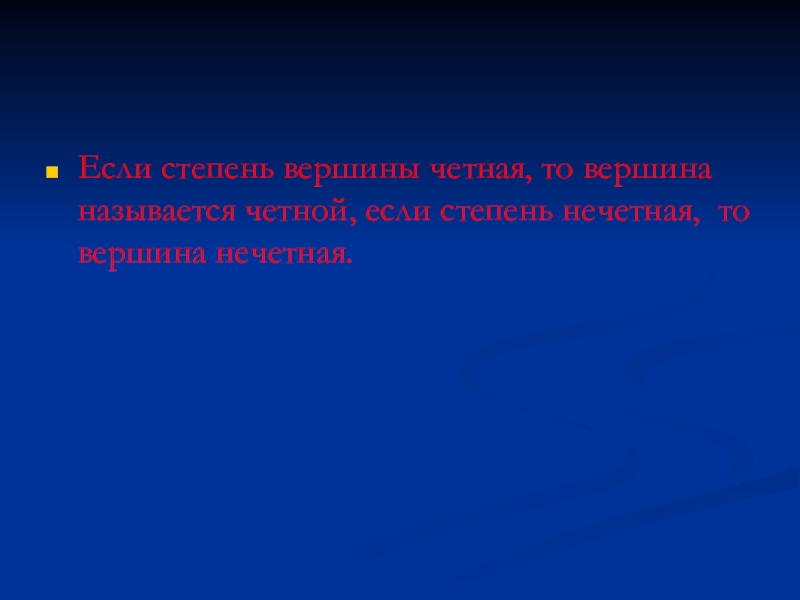 Слайд 26Если степень вершины четная, то вершина называется четной, если степень нечетная,