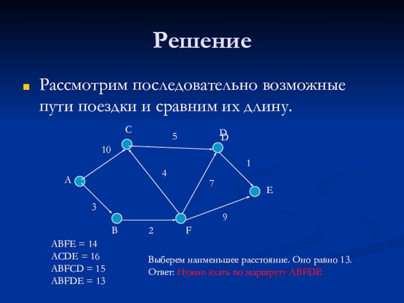На рисунке изображены расстояния между пунктами А, В, С, D, Е,