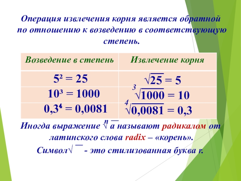 -показатель корня