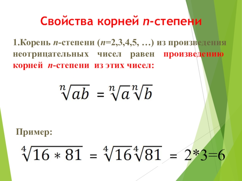 Свойства корней n-степени