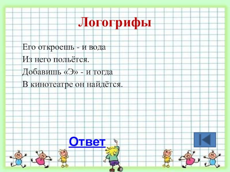 Это сайт презентаций, где можно хранить и обмениваться своими презентациями, докладами, проектами, шаблонами в формате PowerPoint с другими пользователями. Мы помогаем школьникам, студентам, учителям, преподавателям хранить и обмениваться учебными материалами.