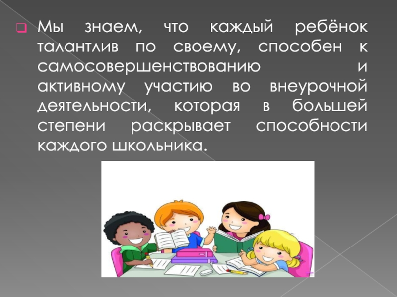 Слайд 2Мы знаем, что каждый ребёнок талантлив по своему, способен к самосовершенствованию