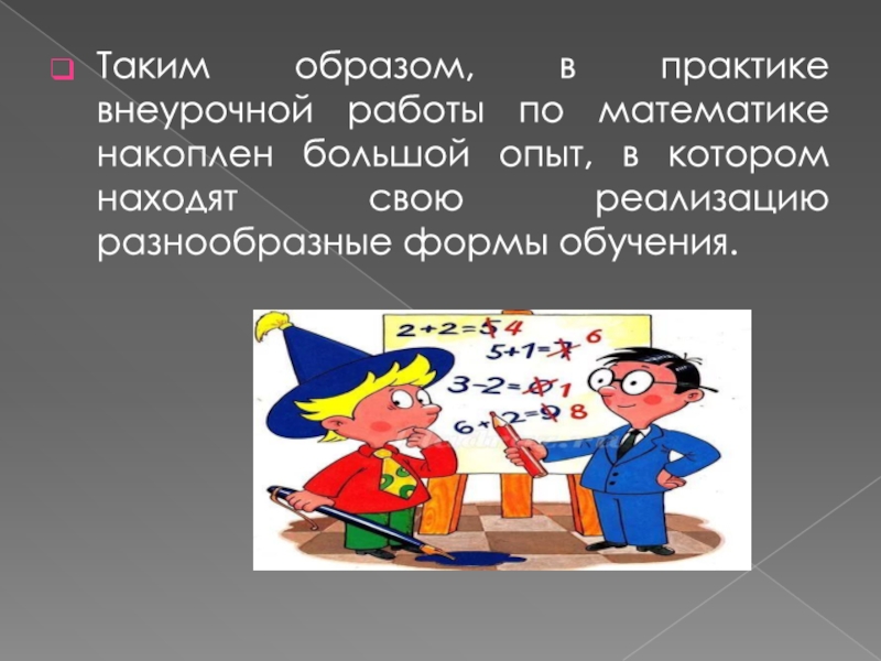 Слайд 23Таким образом, в практике внеурочной работы по математике накоплен большой опыт,