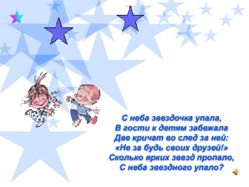 Слайд 7С неба звездочка упала, В гости к детям забежала      Две кричат во