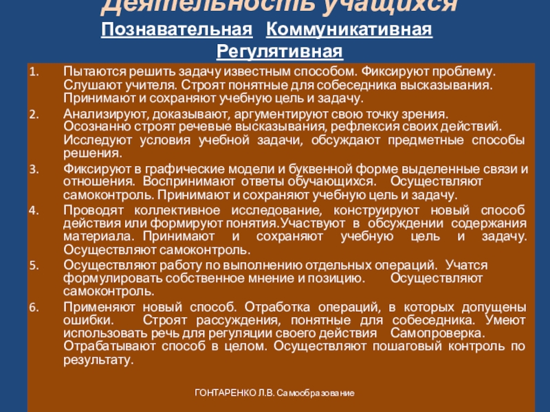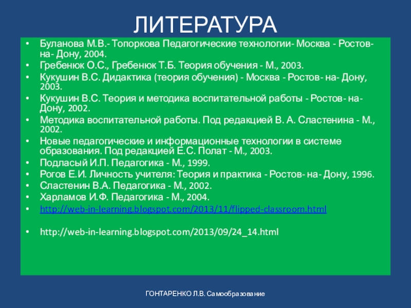 ГОНТАРЕНКО Л.В. Самообразование