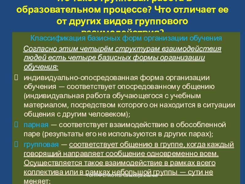 Классификация базисных форм организации обучения