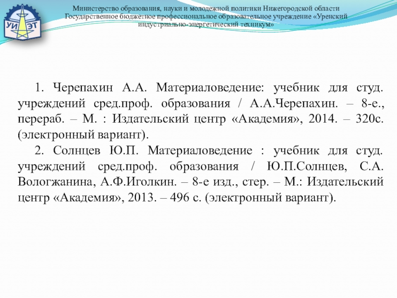 Государственное бюджетное профессиональное образовательное учреждение «Уренский индустриально-энергетический техникум»