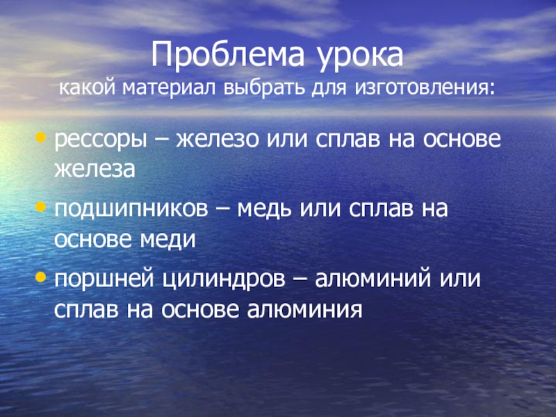 Проблема урока какой материал выбрать для изготовления:рессоры – железо или сплав на основе железаподшипников – медь или