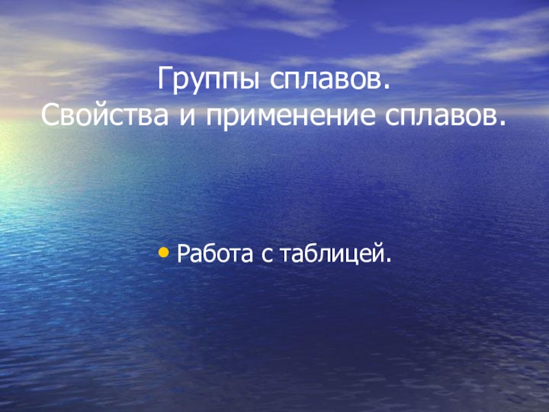 Группы сплавов. Свойства и применение сплавов.Работа с таблицей.