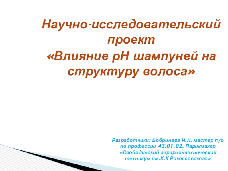 «Влияние рН шампуней на структуру волоса»