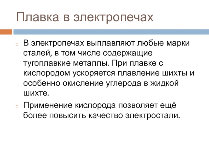Слайд 12Плавка в электропечах