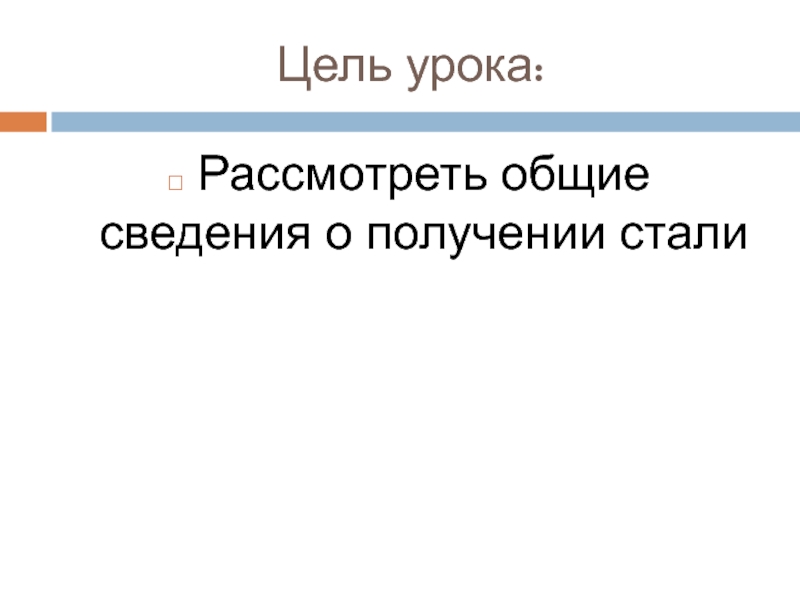 Цель урока:Рассмотреть общие сведения о получении стали