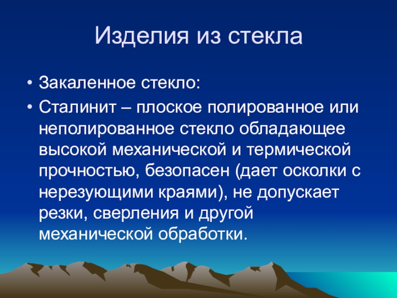 высокой механической и термической прочностью, безопасен (дает осколки с нерезующими краями), не допускает резки, сверления и другой механической обработки.