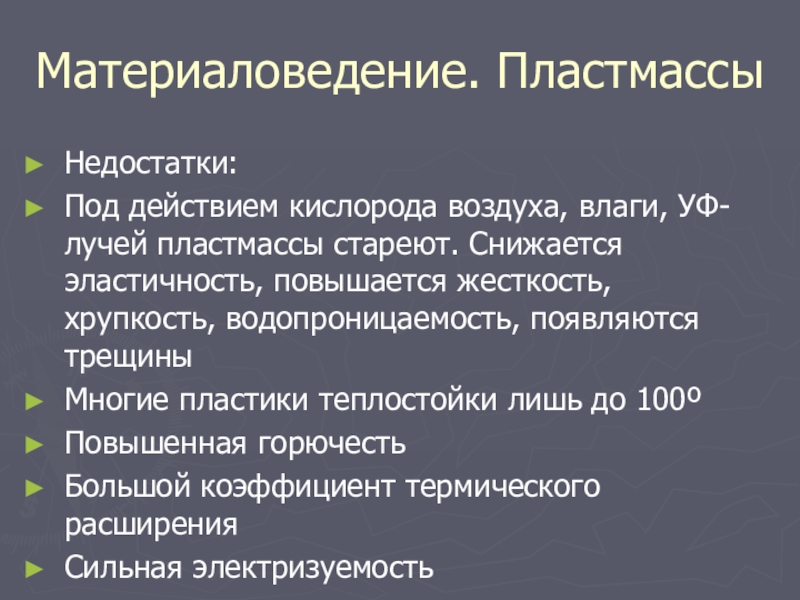 Слайд 22Материаловедение. Пластмассы