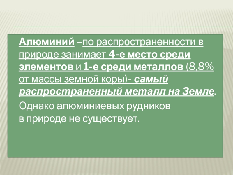 Слайд 3Алюминий –по распространенности в природе занимает 4-е место среди элементов и