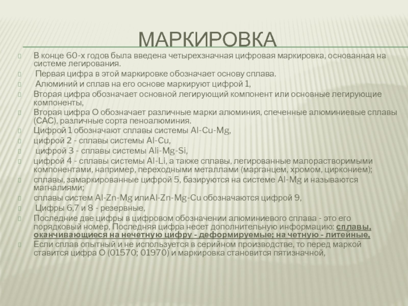 Вторая цифра О обозначает различные марки алюминия, спеченные алюминиевые сплавы (САС), различные сорта пеноалюминия.