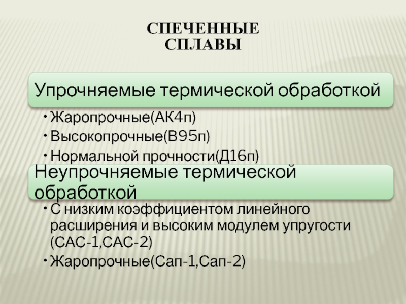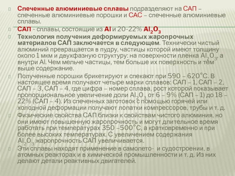 Слайд 15Спеченные алюминиевые сплавы подразделяют на САП – спеченные алюминиевые порошки и САС