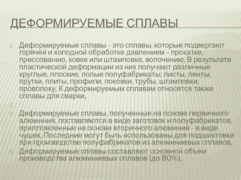 Деформируемые сплавы - это сплавы, которые подвергают горячей и холодной