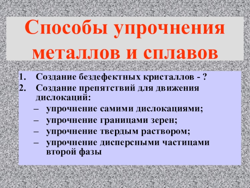Способы упрочнения металлов и сплавов