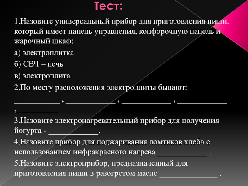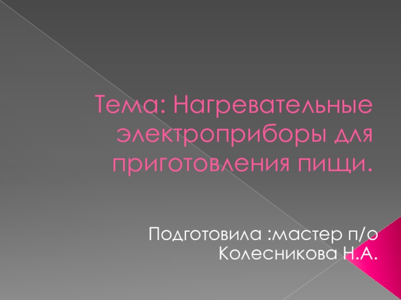 Слайд 1Тема: Нагревательные электроприборы для приготовления пищи.