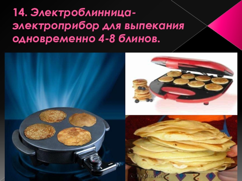 Слайд 2914. Электроблинница- электроприбор для выпекания одновременно 4-8 блинов.
