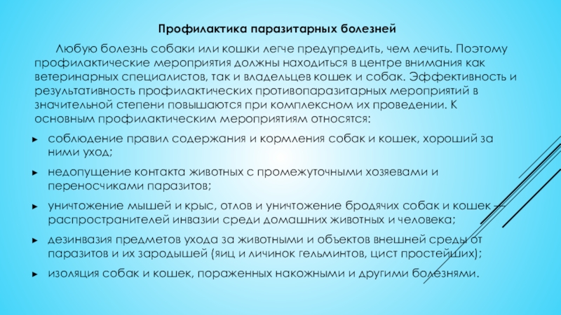 соблюдение правил содержания и кормления собак и кошек, хороший за ними уход;