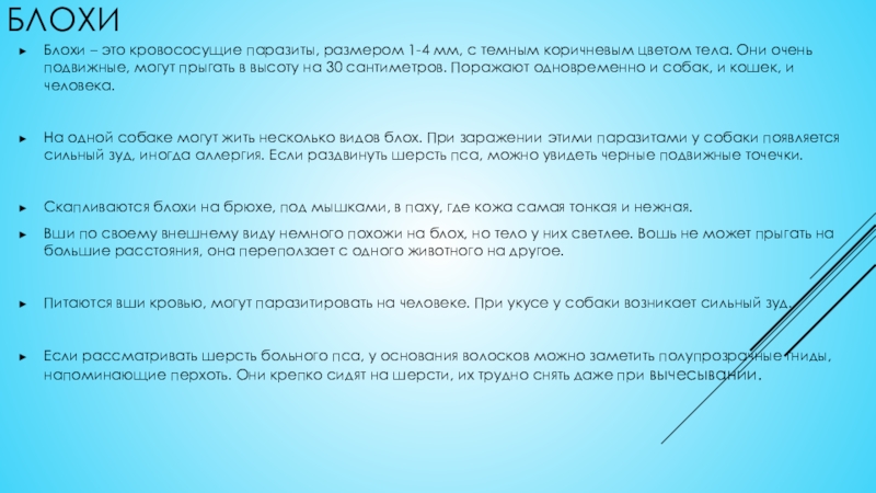 цветом тела. Они очень подвижные, могут прыгать в высоту на 30 сантиметров. Поражают одновременно и собак, и кошек, и человека.