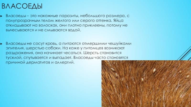 Власоеды – это накожные паразиты, небольшого размера, с полупрозрачным телом желтого