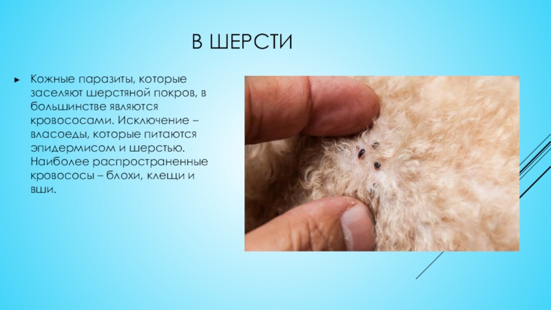 Кожные паразиты, которые заселяют шерстяной покров, в большинстве являются кровососами.