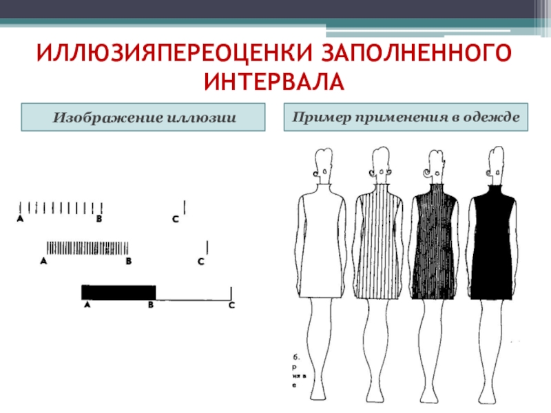 ИЛЛЮЗИЯПЕРЕОЦЕНКИ ЗАПОЛНЕННОГО ИНТЕРВАЛАИзображение иллюзииПример применения в одежде