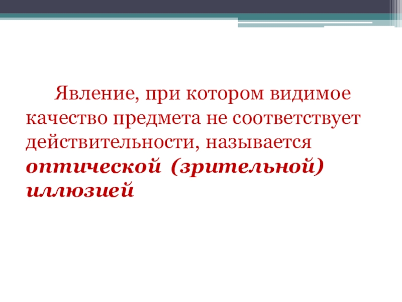 Слайд 2 Явление, при котором видимое качество предмета не соответствует
