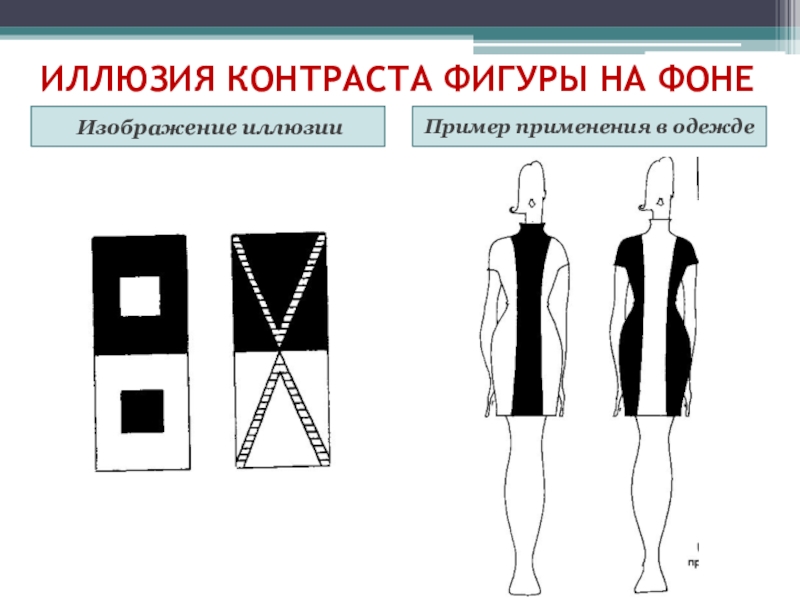 ИЛЛЮЗИЯ КОНТРАСТА ФИГУРЫ НА ФОНЕИзображение иллюзииПример применения в одежде