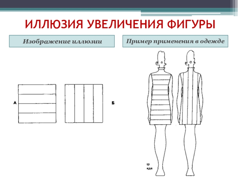 ИЛЛЮЗИЯ УВЕЛИЧЕНИЯ ФИГУРЫИзображение иллюзииПример применения в одежде