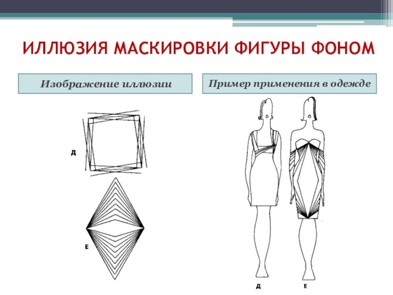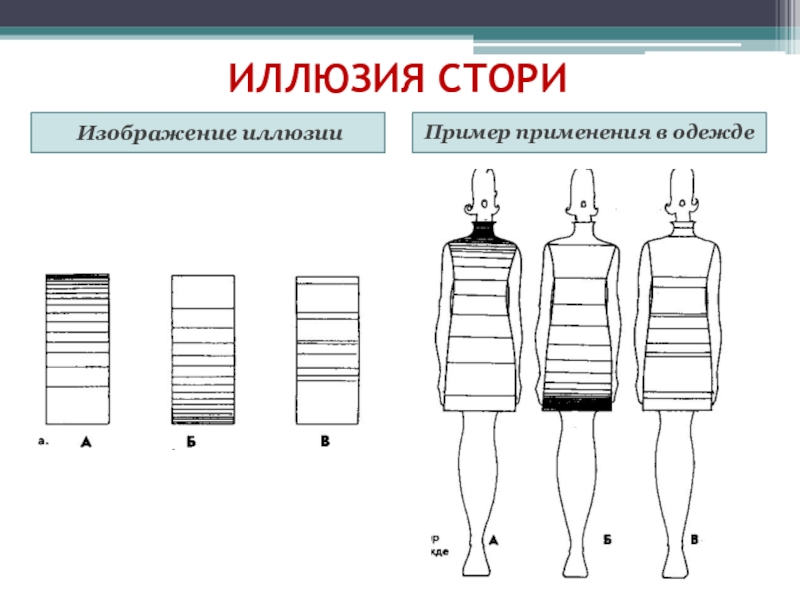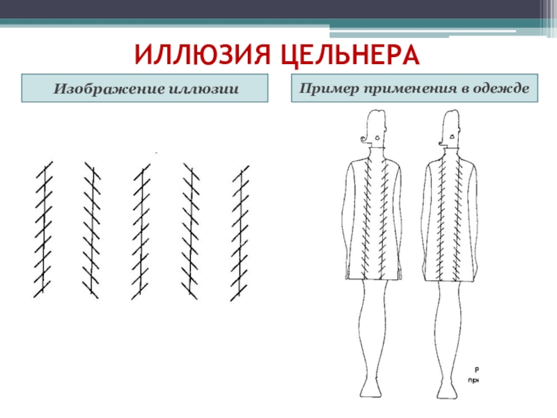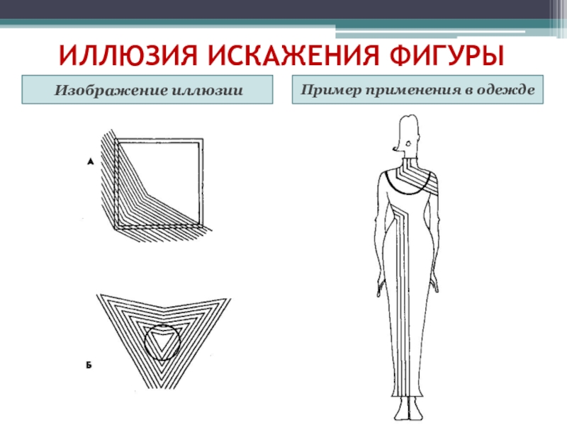 ИЛЛЮЗИЯ ИСКАЖЕНИЯ ФИГУРЫИзображение иллюзииПример применения в одежде