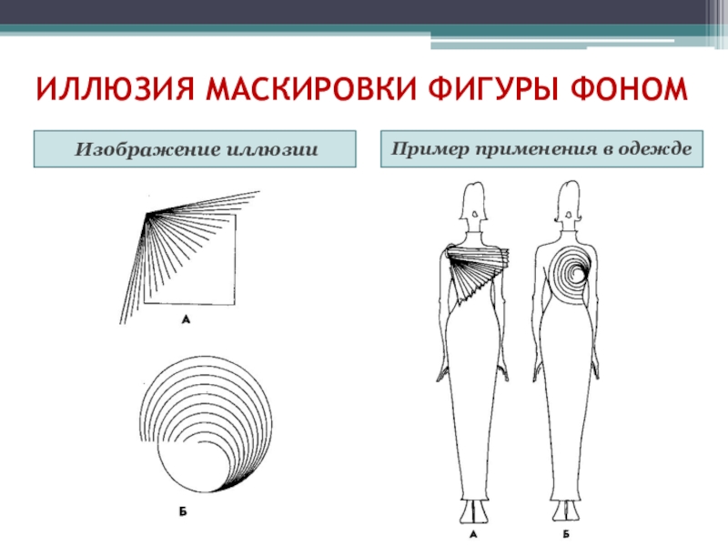 ИЛЛЮЗИЯ МАСКИРОВКИ ФИГУРЫ ФОНОМИзображение иллюзииПример применения в одежде