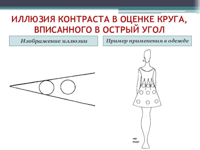 ИЛЛЮЗИЯ КОНТРАСТА В ОЦЕНКЕ КРУГА, ВПИСАННОГО В ОСТРЫЙ УГОЛИзображение иллюзииПример применения в одежде