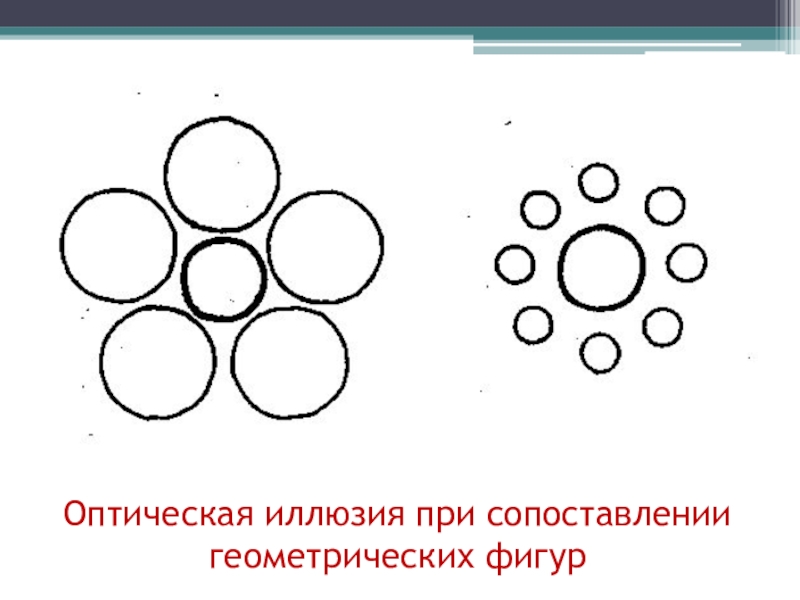 Слайд 6Оптическая иллюзия при сопоставлении геометрических фигур