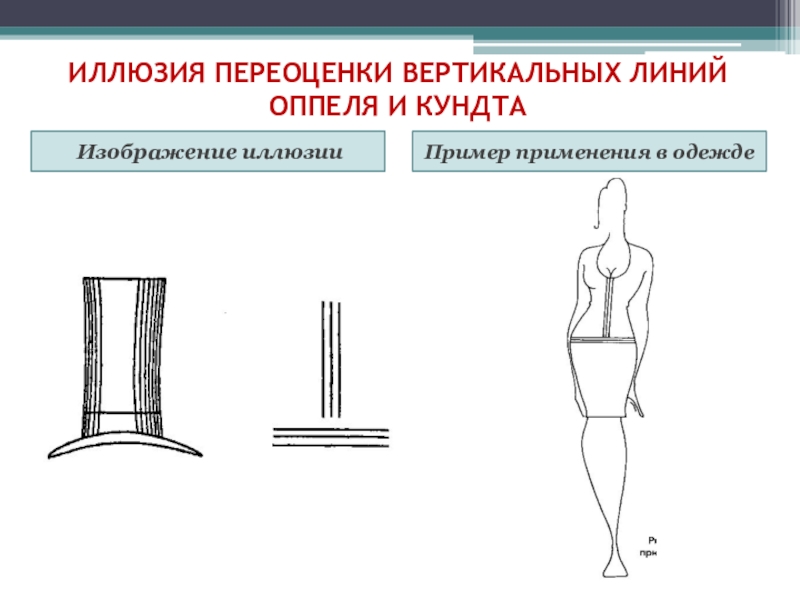 ИЛЛЮЗИЯ ПЕРЕОЦЕНКИ ВЕРТИКАЛЬНЫХ ЛИНИЙ ОППЕЛЯ И КУНДТАИзображение иллюзииПример применения в одежде