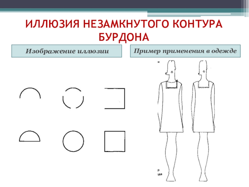 ИЛЛЮЗИЯ НЕЗАМКНУТОГО КОНТУРА БУРДОНАИзображение иллюзииПример применения в одежде