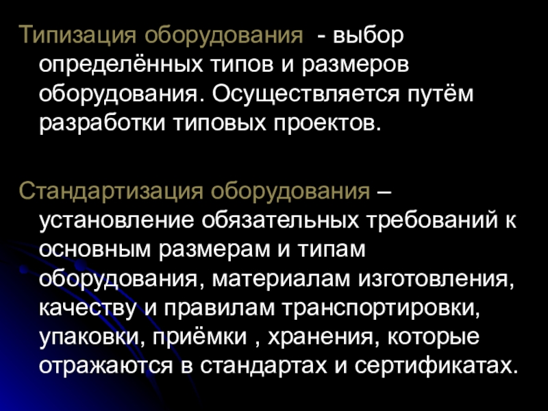 Слайд 9Типизация оборудования - выбор определённых типов и размеров оборудования. Осуществляется путём