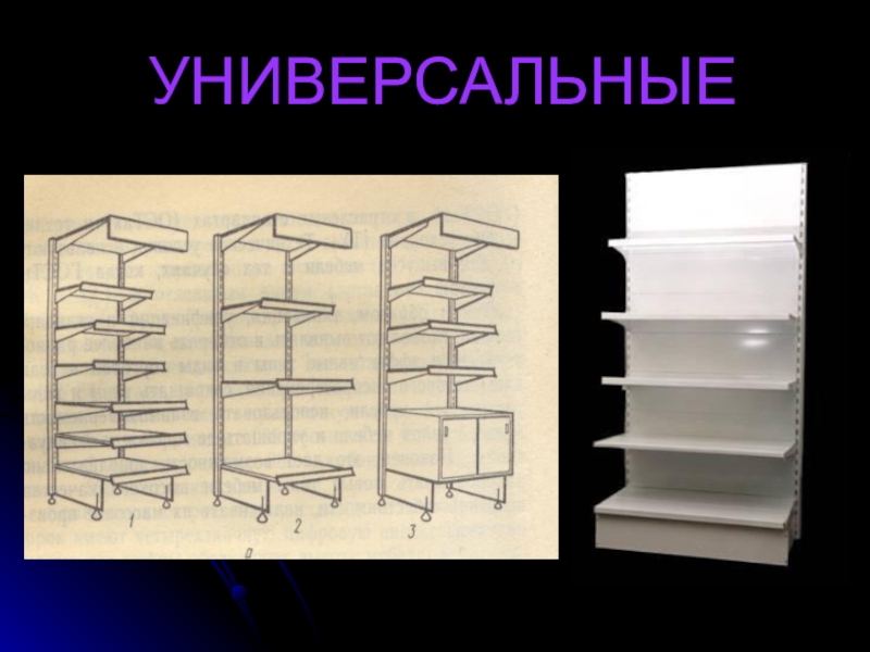 УНИВЕРСАЛЬНЫЕ – предназначены для размещения и демонстрации различных групп товаров.